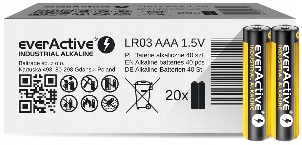 Предложенная цена указана за комплект из 40 батареек LR03 AAA everActive, упакованных в термоусадочную упаковку по 2 штуки.