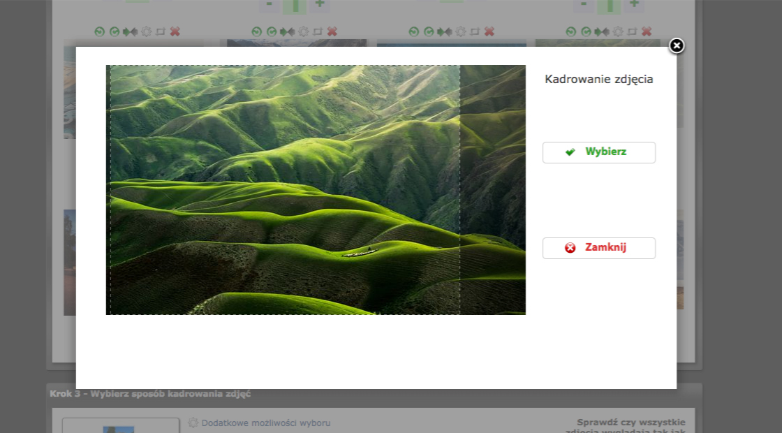 По краю фотографии имеется рамка. Фотография обрезается до необходимого размера. Как и раньше, вы можете выбрать в редакторе область обрезки для конкретной фотографии.
