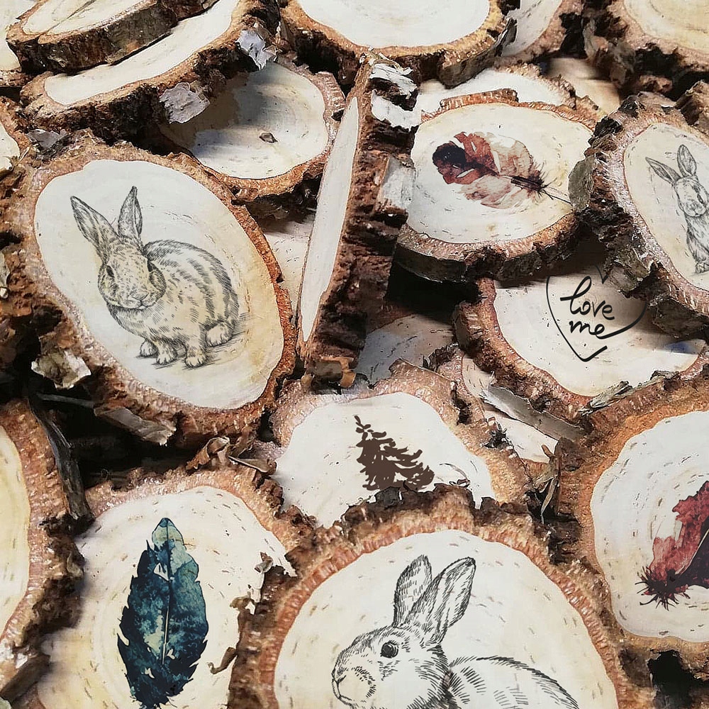 Каждый срез тщательно подготовлен - перед разрезанием древесины тщательно очищается , что обеспечивает гладкую, хотя и неоднократную поверхность . В отличие от многих продуктов, доступных на рынке, наши кусочки имеют толщину около 20 мм , что делает их более долговечными и более устойчивыми к механическим повреждениям . Диаметр каждого патча от 8 до 10 см , что дает много творческого использования.