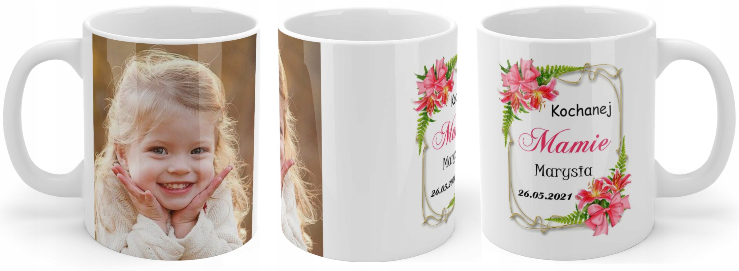Возможно изготовление кружки без фотографии — тогда будет рамка с посвящением. выполнено с обеих сторон.