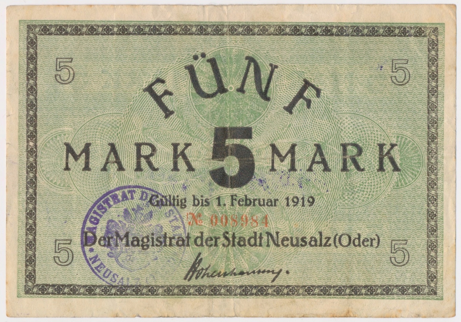 4281. Neusalz oder (Nowa Sól), 5 мк 1919 - клас 4+