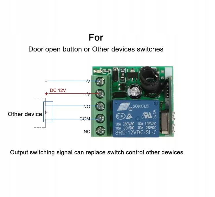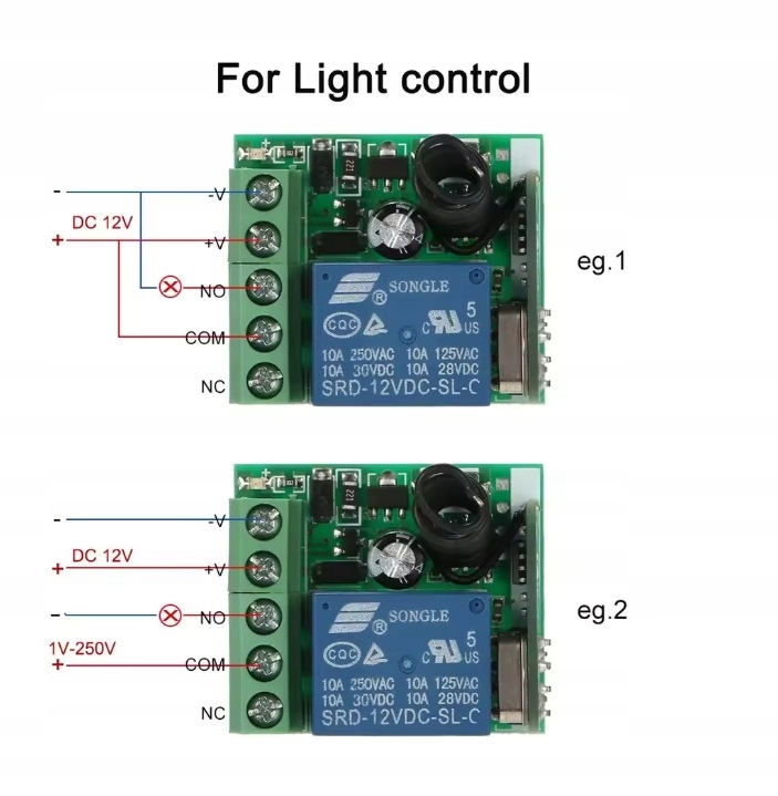 DC 12V 10A Реле -приемник: оснащен реле DC 12V 10A, этот мини -модуль обеспечивает надежное и устойчивое действие модуля.