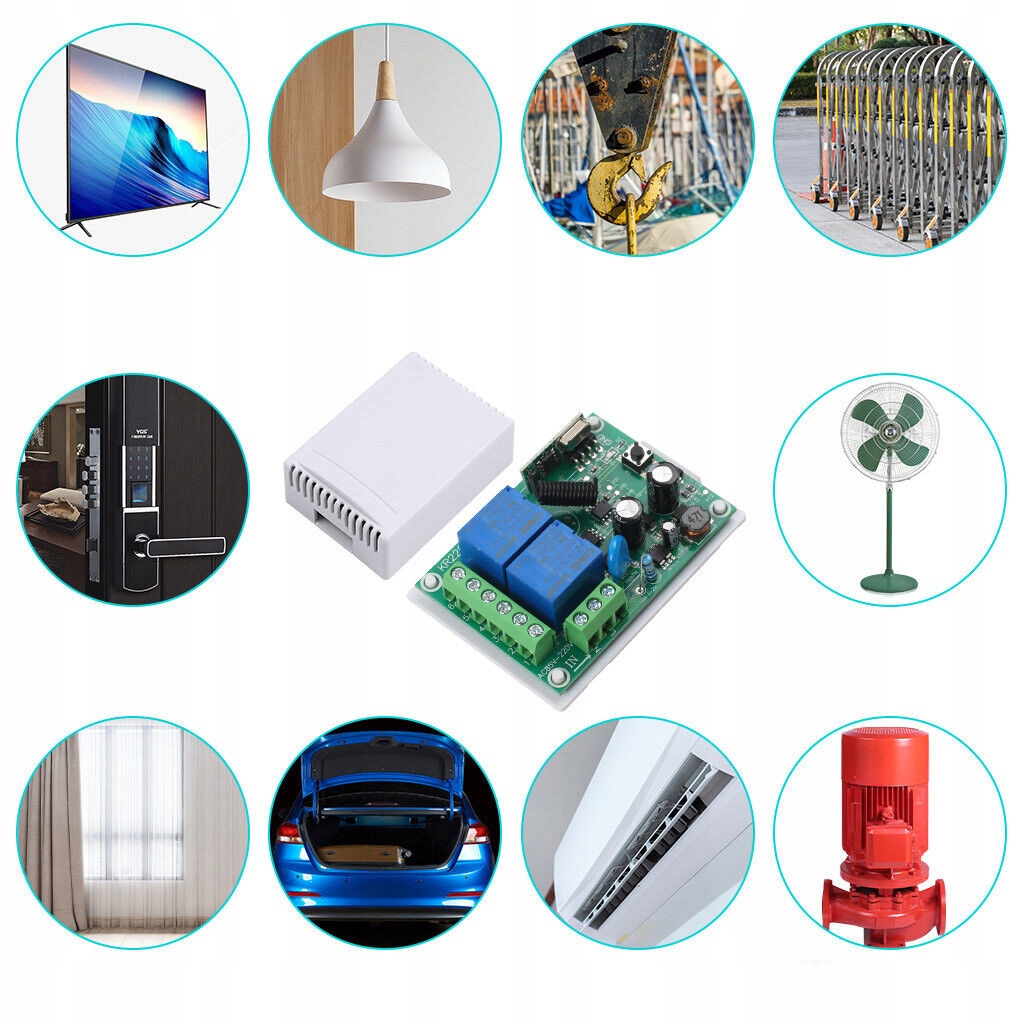 Продукты можно использовать в домах, на фермах, на фабриках, в офисах, лабораториях, супермаркетах и т. д. Для беспроводного дистанционного управления вы можете использовать от простых домашних пультов дистанционного управления до средств автоматизации, таких как электрические шторы, гаражные ворота, мотор, системы сигнализации, освещение и т. д.