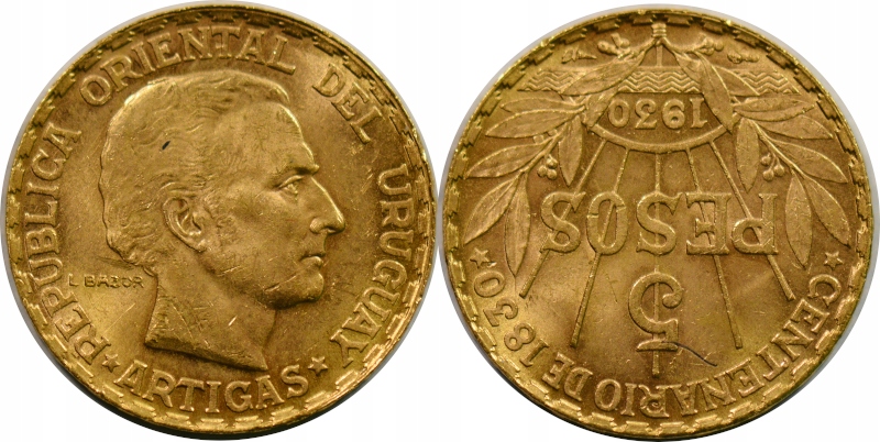 43Z. УРУГВАЙ 5 ПЕСОС 1930 ДЕРЖАВИ І ЗОЛОТО