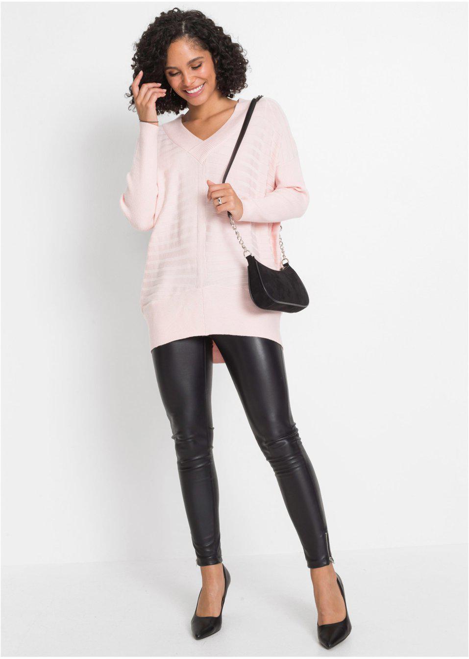 44 _in свободного ребристого свитера с бледно -розовой вискозом в сыре в сыре