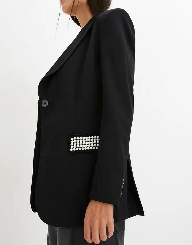44 ПИДЖАК С ДЕКОРАТИВНЫМИ БУСИСАМИ НА КАРМАНАХ
