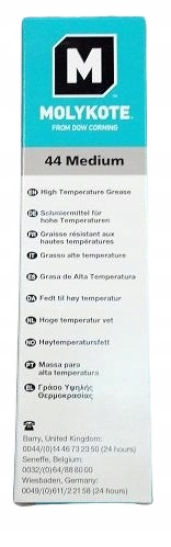 Molykote®44 Среда. Силиконовая смазка подшипника на литиевом мыле, устойчивая к высоким и низким температурам, подходящая для подшипников, используемых в вентиляторах очага и вентиляторах сушилки и охлаждения, конвейеров, печей, клея, сушилки из ткани, двигателей самолетов, подшипников сцепления, пластиковых элементов. Используется для смазки пластмасс, подшипников в духовках для стрельбы и передач, кулачков, а также металлических и резиновых деталей, работающих при чрезвычайно низких и высоких температурах.