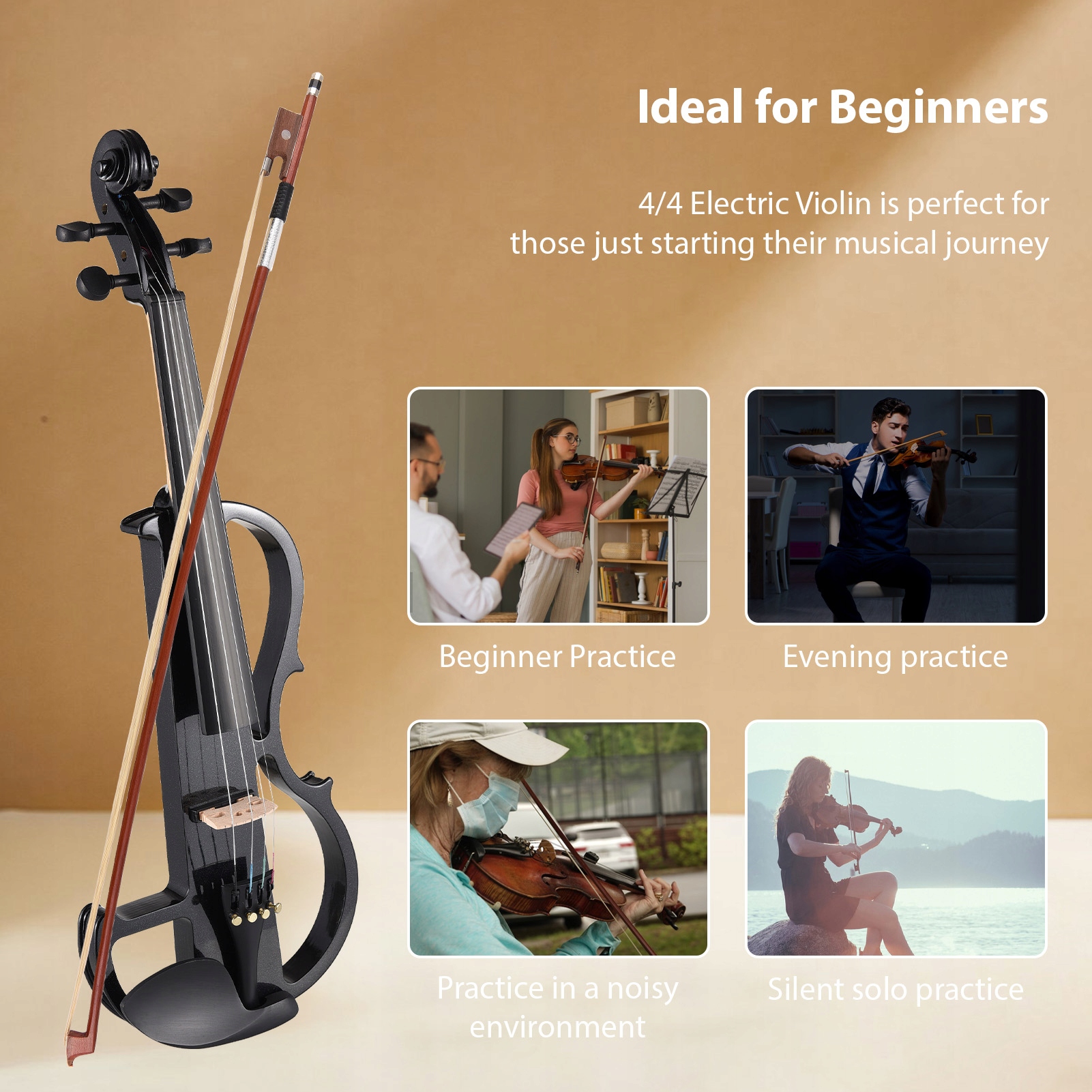 1. 【Идеально подходит для начинающих】: Наша электрическая скрипка 4/4 идеально подходит для тех, кто только начинает свое музыкальное путешествие. Обеспечивает тихую и спокойную практику, позволяя вам погрузиться в радость игры, не мешая другим.