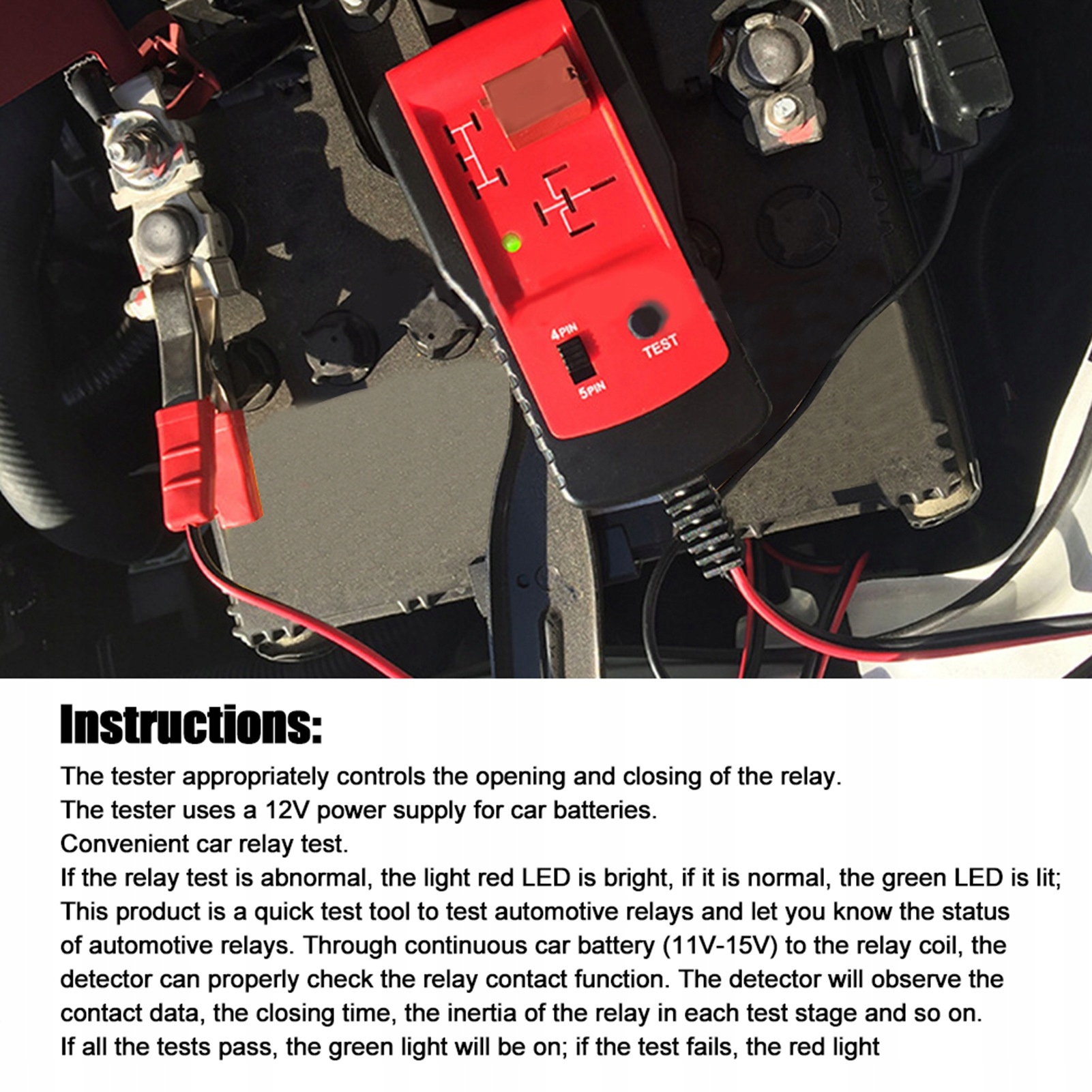 Этот продукт представляет собой быстрый тестовый инструмент для тестирования автомобильных реле и информации о состоянии автомобильных реле. Через непрерывную автомобильную батарею (11V-15 В) в реле катушку, детектор может правильно проверить контакт реле. Детектор будет соблюдать контакт, время закрытия, ретрансляцию инерции на каждом этапе теста и так далее. Если все тесты будут успешными, зеленый свет загорется; Если тест не удается, красный свет будет освещаться.