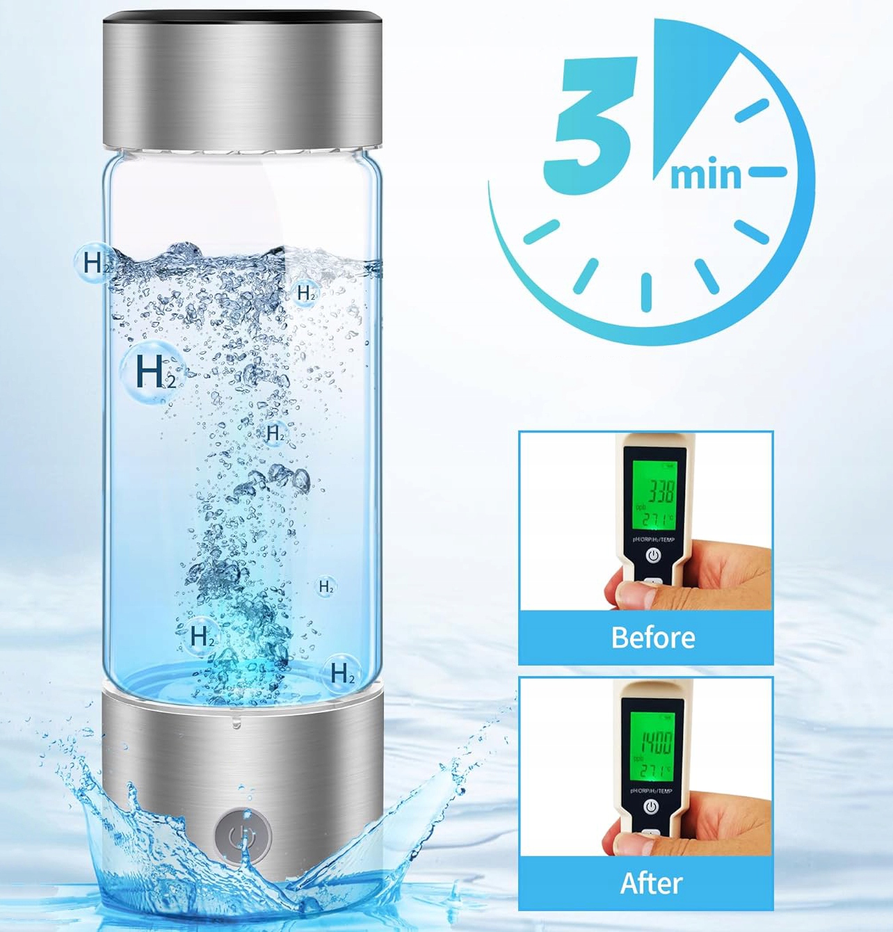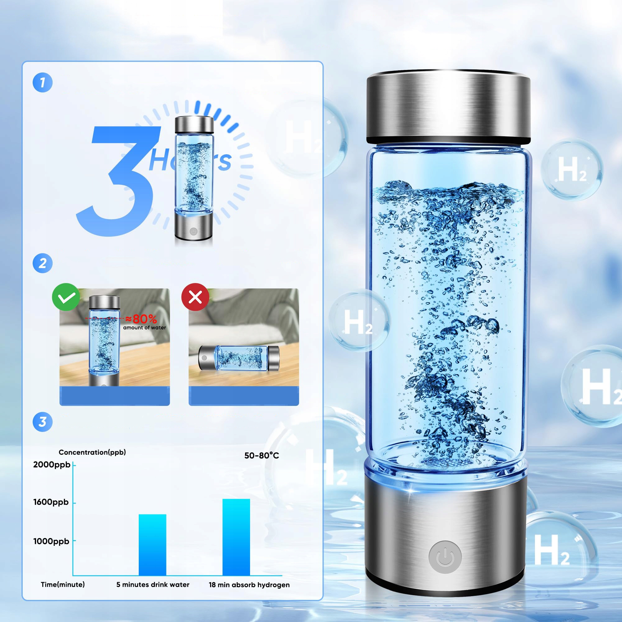 Проще говоря Здоровье позволяет вам легко наслаждаться водой, богатой водородом. Просто вылейте 60% -80% воды в бутылку, слегка нажимайте, и свет внизу будет включаться, когда из воды будет создаваться газ водорода.