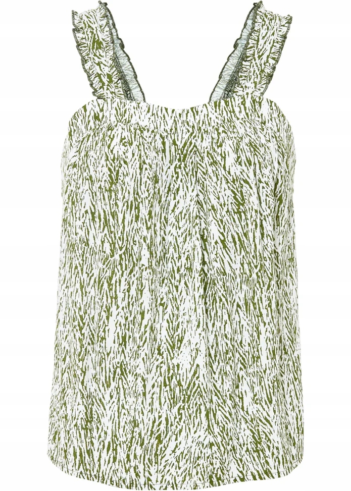 Лесно-зеленый + белый креповый топ с принтом и ромбовидным вырезом.
