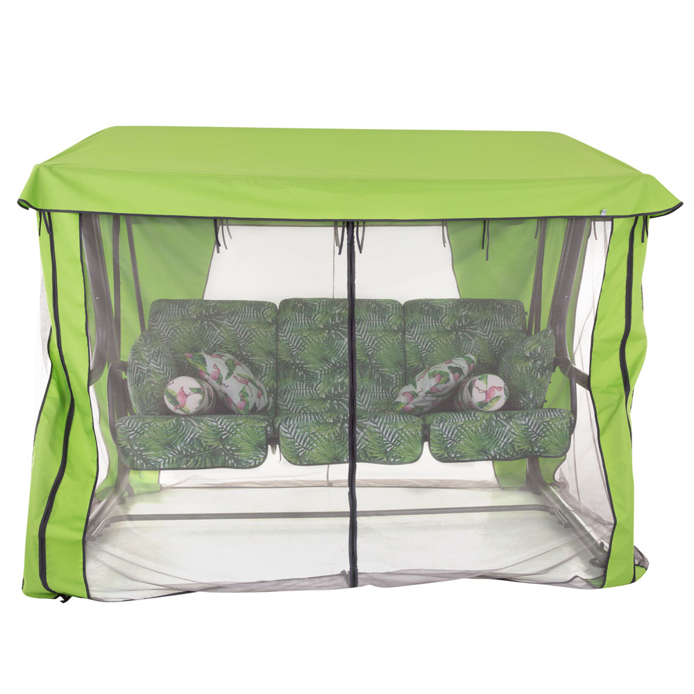 зеленый навес и серая сетка, сетка, оборудованная 5 молниями по бокам + 1, фиксируется на крыше. Сеть комаров окружает весь качели, она соответствует качанию Rimini / Venezia.