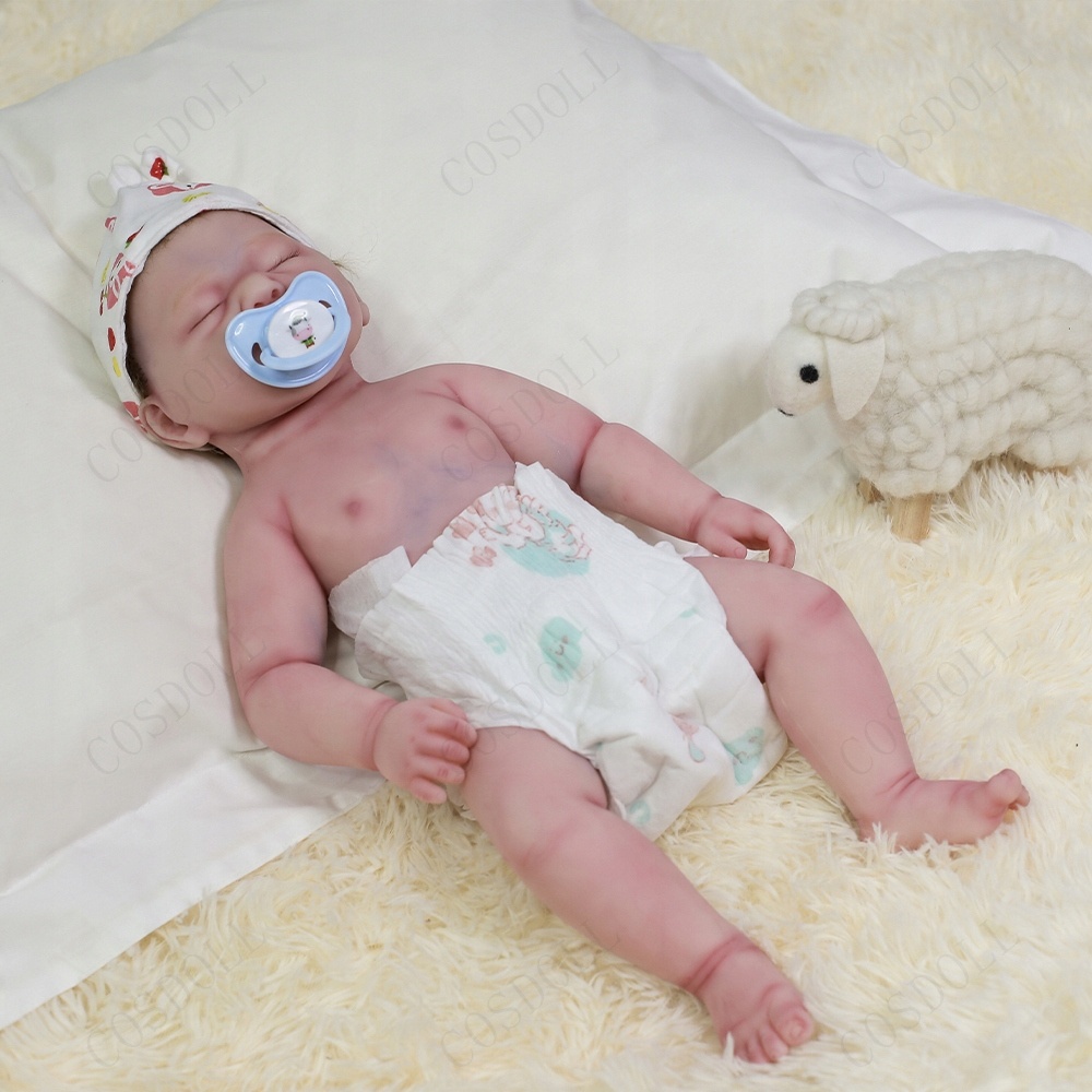 Это кукла реборн 100% ручной работы, размер ребенка: 18,5 дюймов, около 47 см. Волосы: высококачественные волосы, собранные вручную, устойчивые и простые в уходе, очень реалистичные и детализированные. Глаза: малыш спит, глаза не могут открыться. Одежда случайная. Одежду кукле вы можете переодеть самостоятельно, для куклы отлично подойдет одежда по размеру настоящего ребенка от 0 до 3м. МАТЕРИАЛ И КОНСТРУКЦИЯ: Силиконовая кукла всего тела, мягкая и реалистичная на ощупь, гибкая. Куклу можно помещать в воду для купания или душа, она полностью сухая, кукла регулируется, может сидеть или лежать, не может говорить и есть. В комплекте: кукла, одежда, соска, бутылочка, кукольная карточка. Область применения Детские подарки на день рождения, детские игрушки, рождественские подарки и коллекции для детей или любимых.