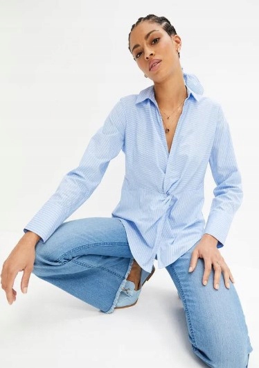 48 _in хлопчатобумажной блузки с полосатым воротником