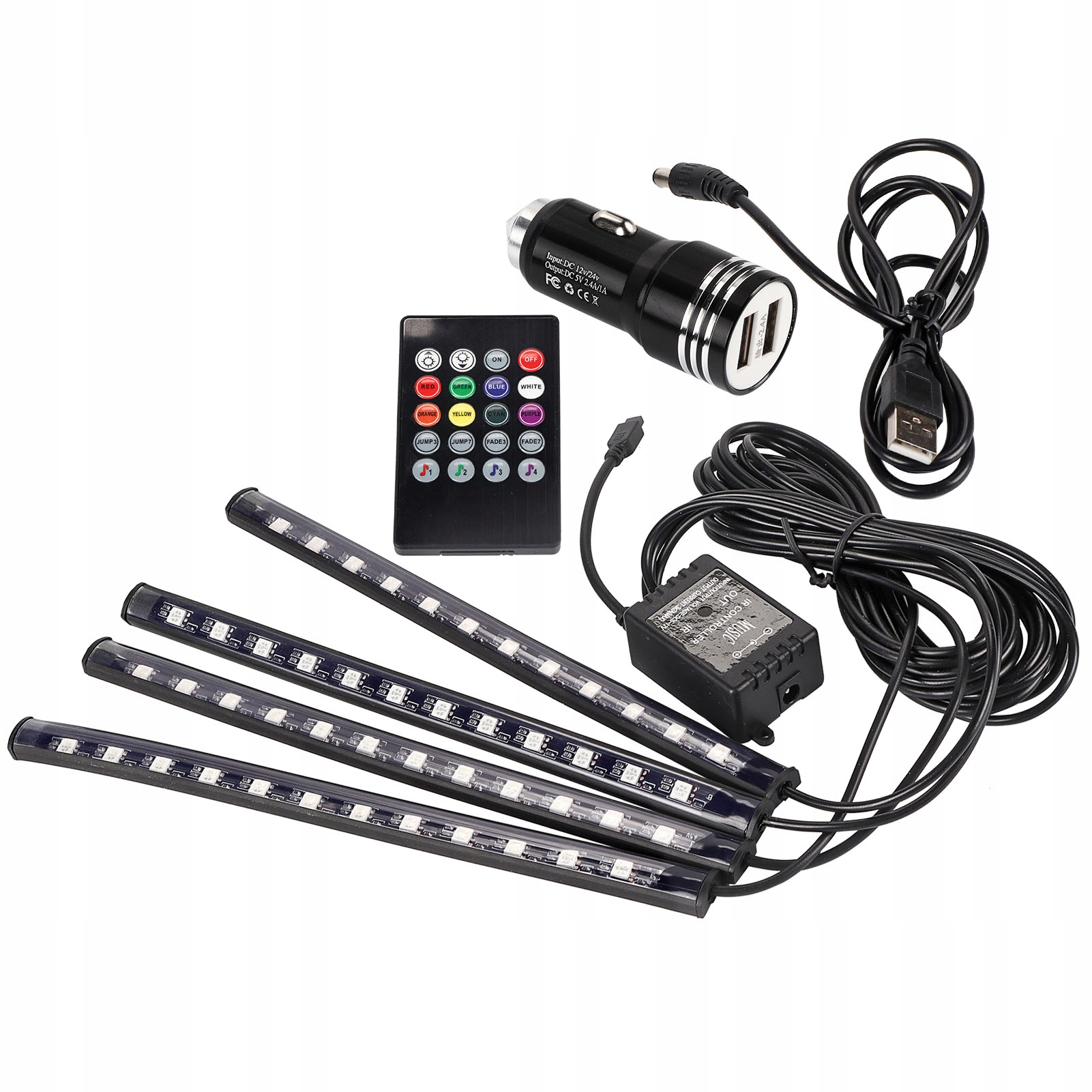 Автомобильная светодиодная лента, 4 шт. 48 светодиодов Многоцветная подсветка салона автомобиля с музыкой