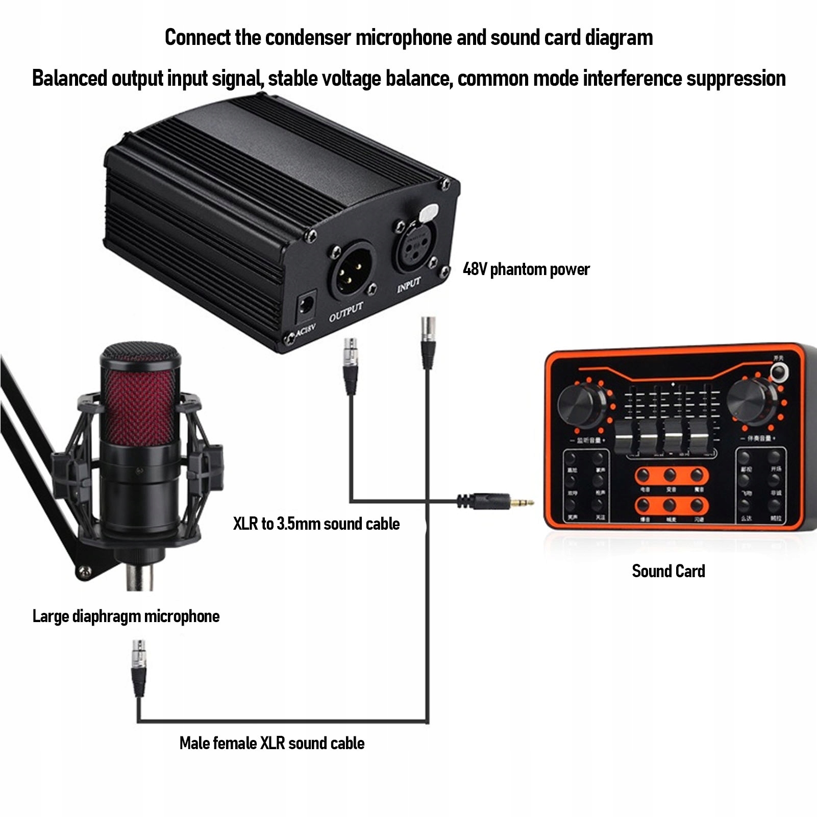 3. Совместимый с устройствами микрофона 48 В: Идеально подходит для микрофонов, смесителей или звуковых интерфейсов, требующих 48 В питания питания, призрачный источник питания обеспечивает стабильное натяжение и снижение шума для оптимальной эффективности.