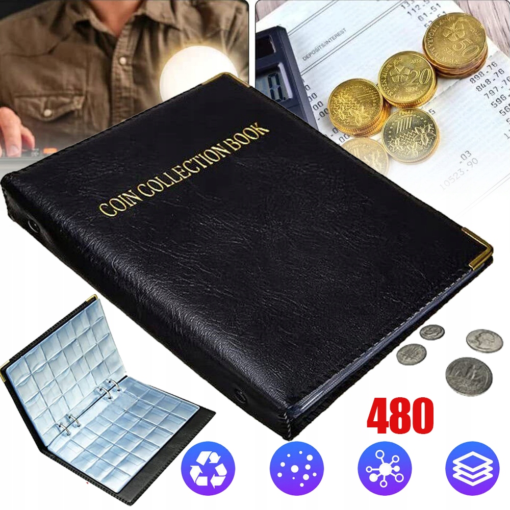 480 ШТ МОНЕТ, АЛЬБОМ ДЛЯ МОНЕТ, АЛЬБОМ ДЛЯ КОЛЕКЦІЙНИХ МОНЕТ, ЧОРНИЙ