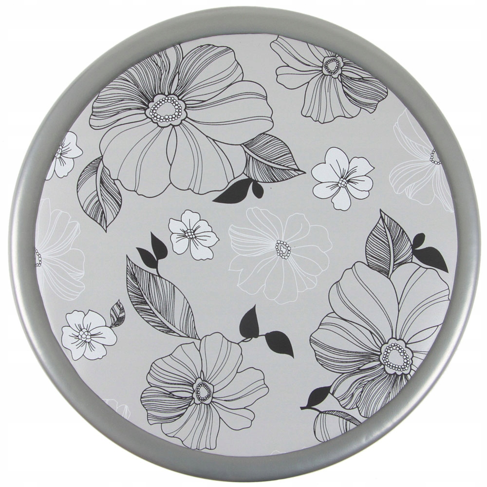 Складной табурет цветочно-серого цвета на стальном каркасе серебристого цвета с порошковым покрытием. Он легко собирается и в сложенном виде не занимает много места. Табуретка будет хорошо работать на кухне, в детской комнате, на балконе и в саду. В коллекции Flower также есть стол и стул с таким же узором.
