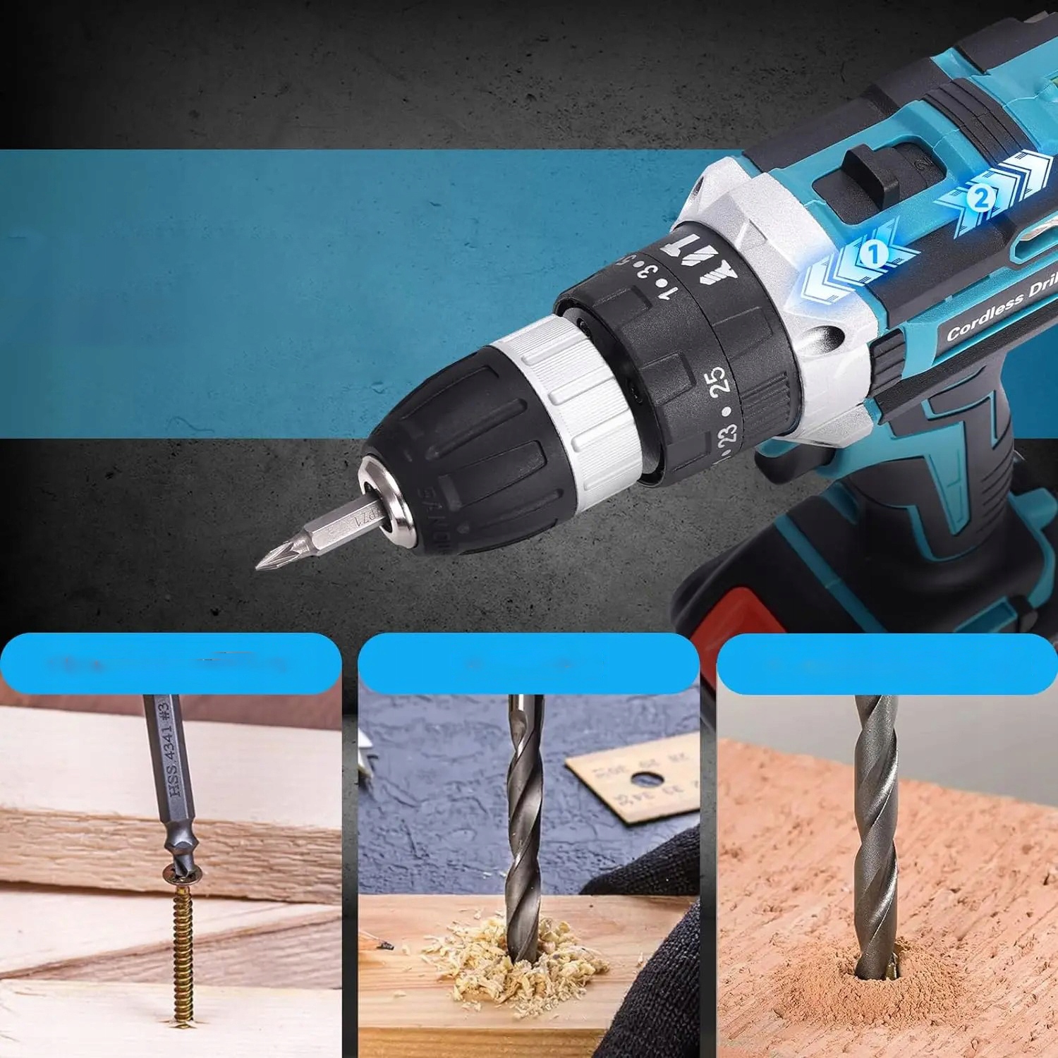 🔹 Регулировка сцепления : 25 + 1 (бурение) < Освещение : Да, светодиод