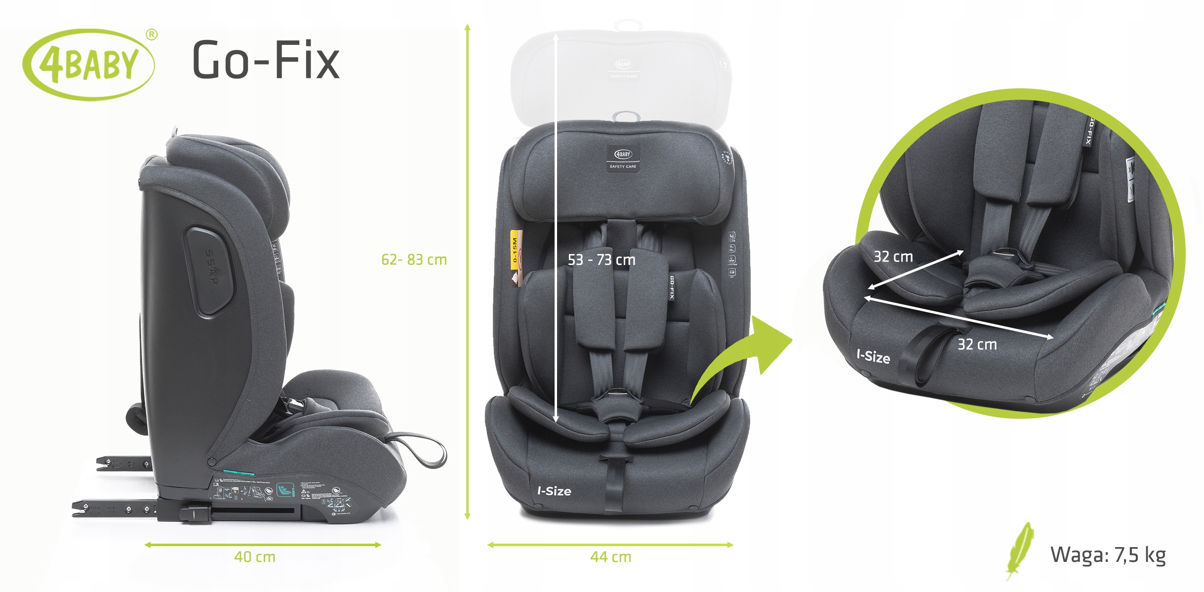 ⭐4Baby GO-FIX I-Size АВТОКРЕСЛО 9-36 кг 76-150 см - ГРАФИТ⭐