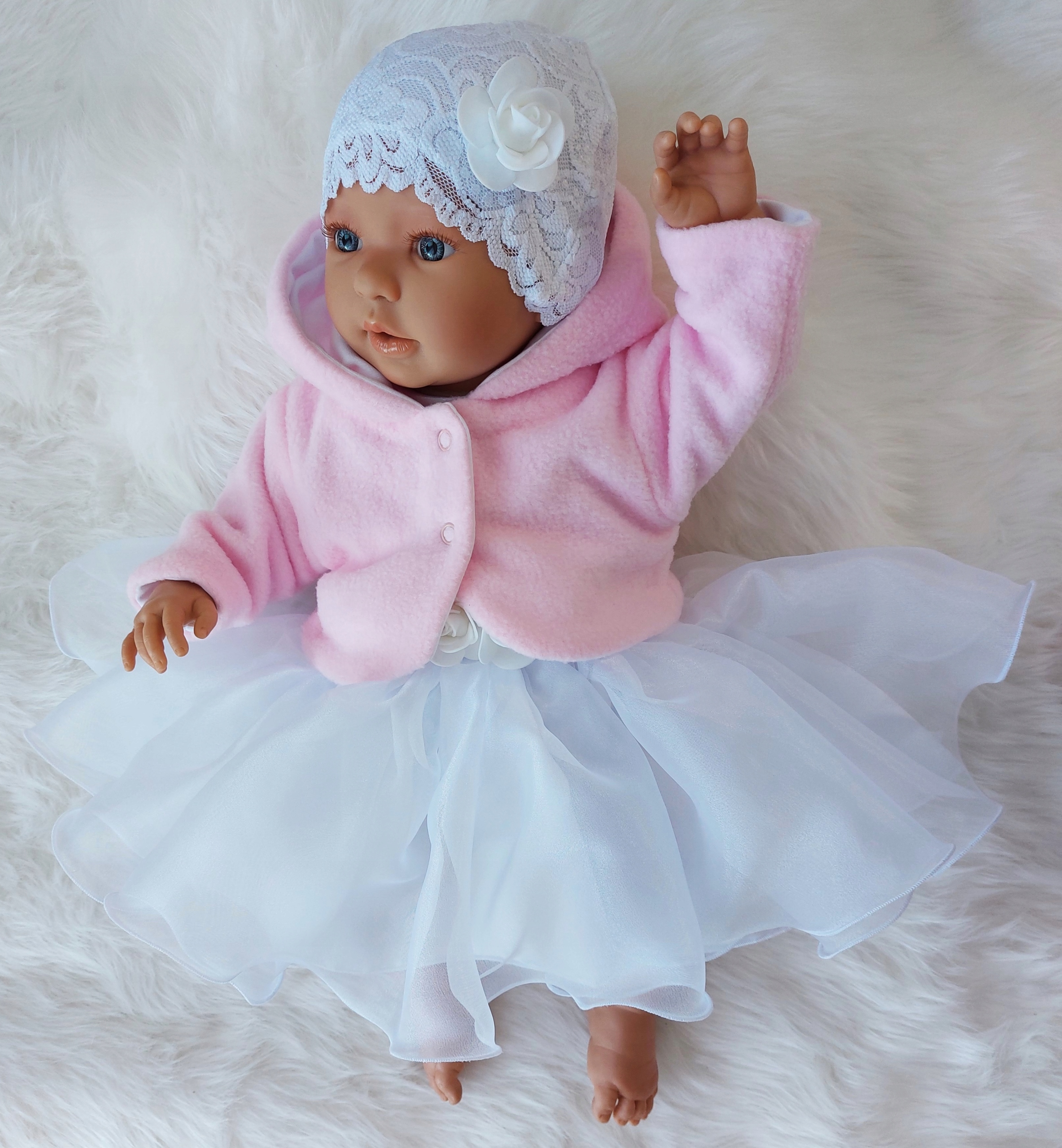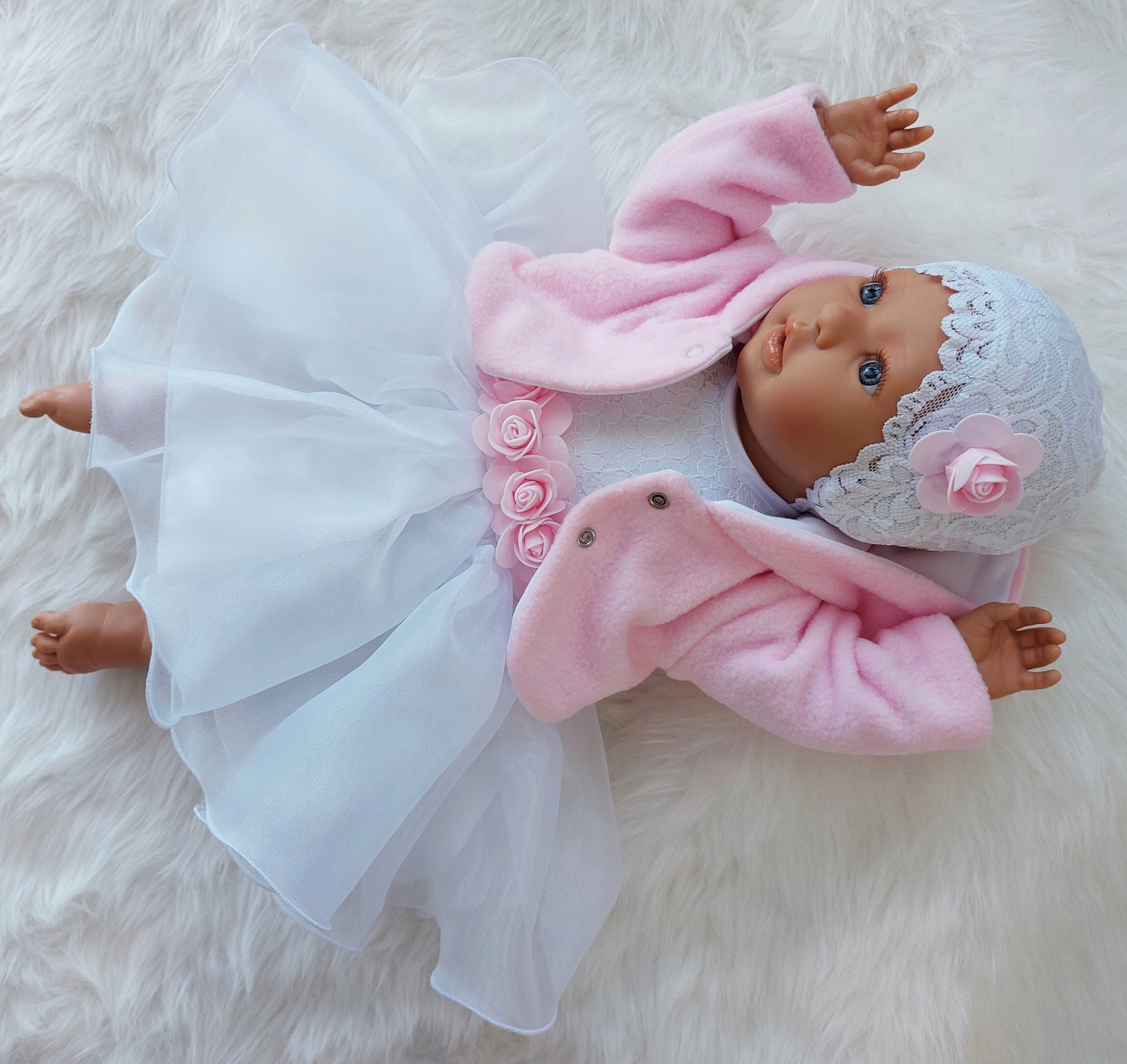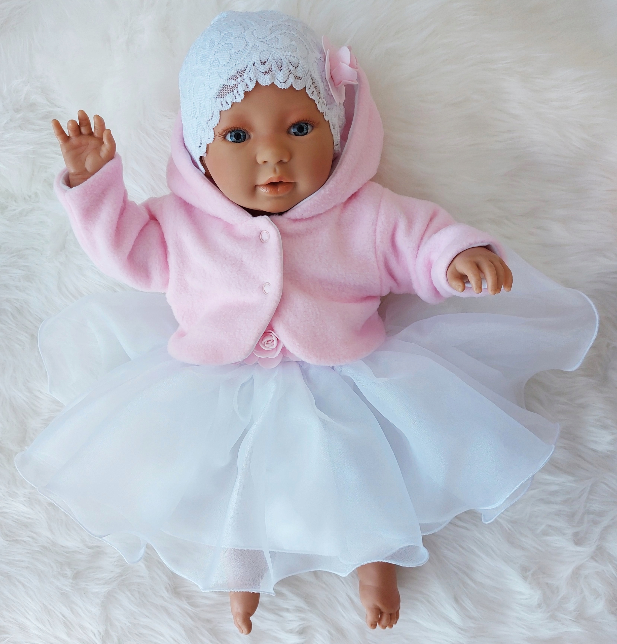 Болероиз белого или розового флиса (на выбор), подкладка из хлопка, застегивается на кнопки.