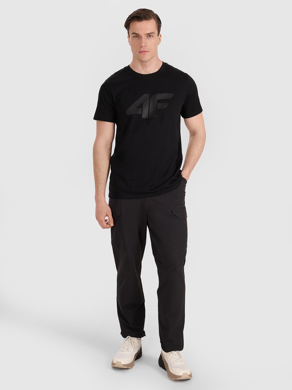 Мужская футболка 4F изготовлена из 100% хлопка, что делает ее мягкой, прочной и приятной на ощупь. Круглый вырез горловины обработан легкими рубчиками. Спереди виден принт «4F».