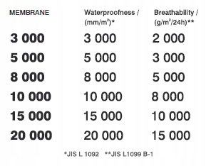 - мембрана: NEO DRY WP 5,000 / MVP 3,000