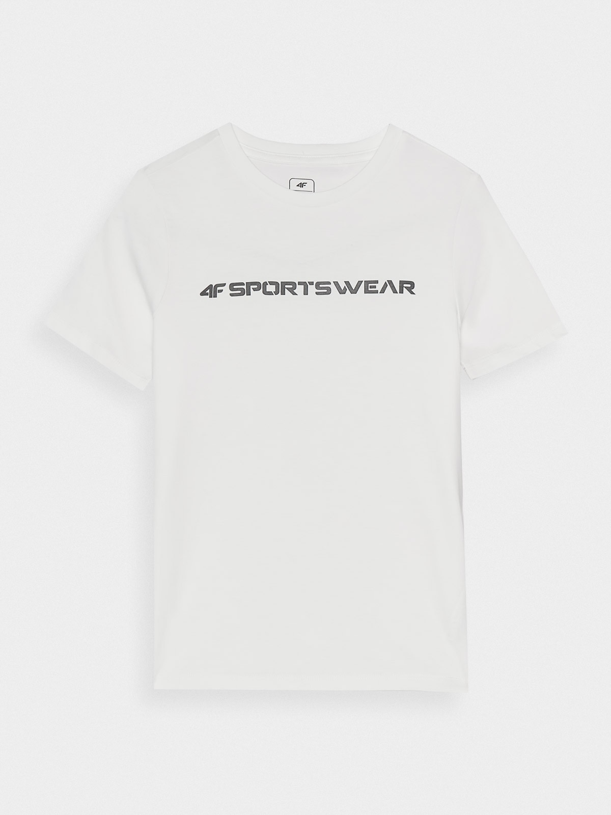 Футболка 4F парня из 100% хлопка, что делает ее мягким, долговечным и приятным на ощупь. Круглый вырез завершен с легким ребром. Спереди, надпись "4F Sportswear".