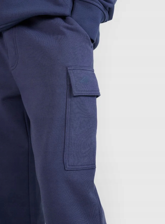 Махровая ткань с одной стороны гладкая, а с другой стороны видно петельное переплетение. Спортивные штаны для мальчиков 4F изготовлены из материала средней плотности плотностью 300 г/м2, что делает их мягкими и более дышащими.