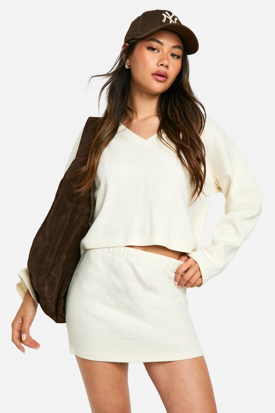 4G5B26 BOOHOO ECRU вязаный набор Set Set Setuter и юбка A02 XS
