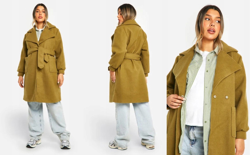 4H2A1 A02 BOOHOO Оливковое пальто с ремнем M с ремнем M