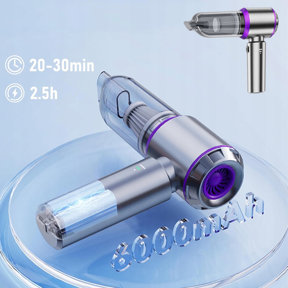 - ✔ оснащена литийной батареей с емкостью 6000 мАч , это портативная беспроводная очистка вакуума полностью нагрузки в 3-3,5 часа , и в a aut Lonomy . 18 минут в среднем режиме и 30 минут в низком режиме .