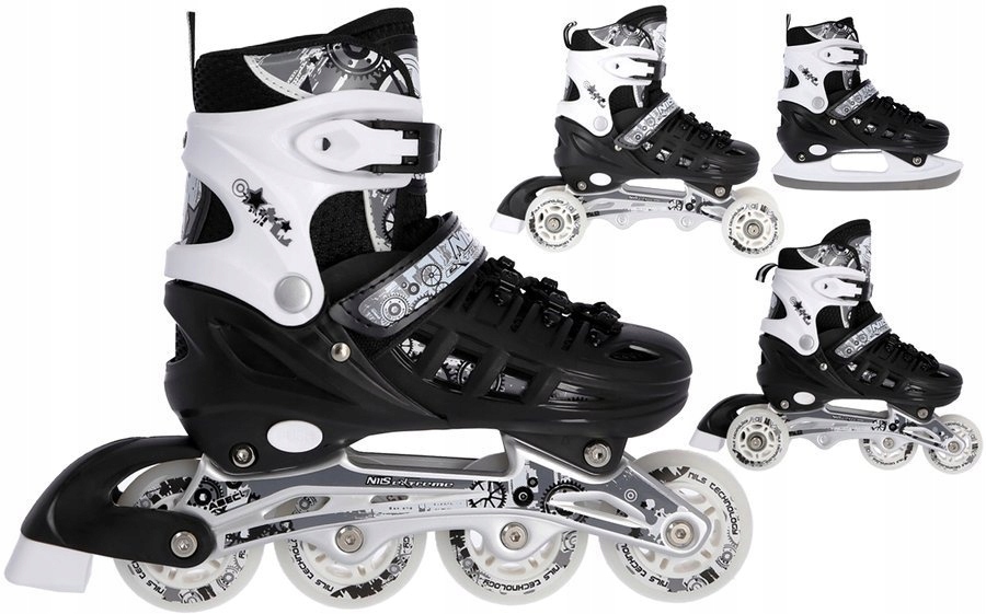 NH10905 Set Nils Extreme — коньки, созданные для любителей катания на коньках. Продукт предлагает 4 варианта конфигурации. Это: коньки, роликовые коньки, роликовые коньки и роликовые коньки.