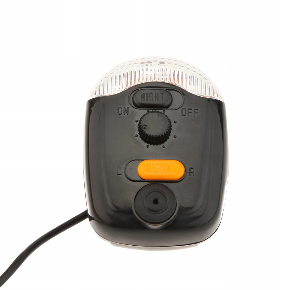 Указатели поворотов со стоп-сигналом - пилот, блок управления рулем - датчик стоп-сигнала - комплект универсальных держателей - передний свет Поворотники имеют 2 режима работы: - ночной - дневной, питание от батареек типа АА.