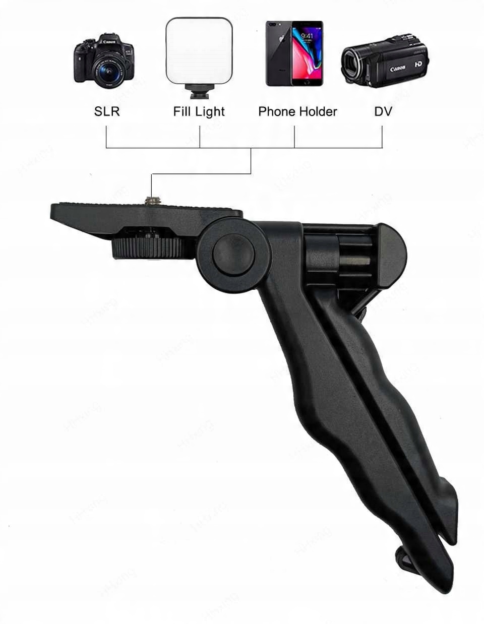 Универсальный штатив: 3KD -нагрузка -обеспечивающая со стандартными 1/4 дюймами, может быть установлен непосредственно, используя заполненный свет, держатель мобильного телефона, SLR, микрофон и т. Д.