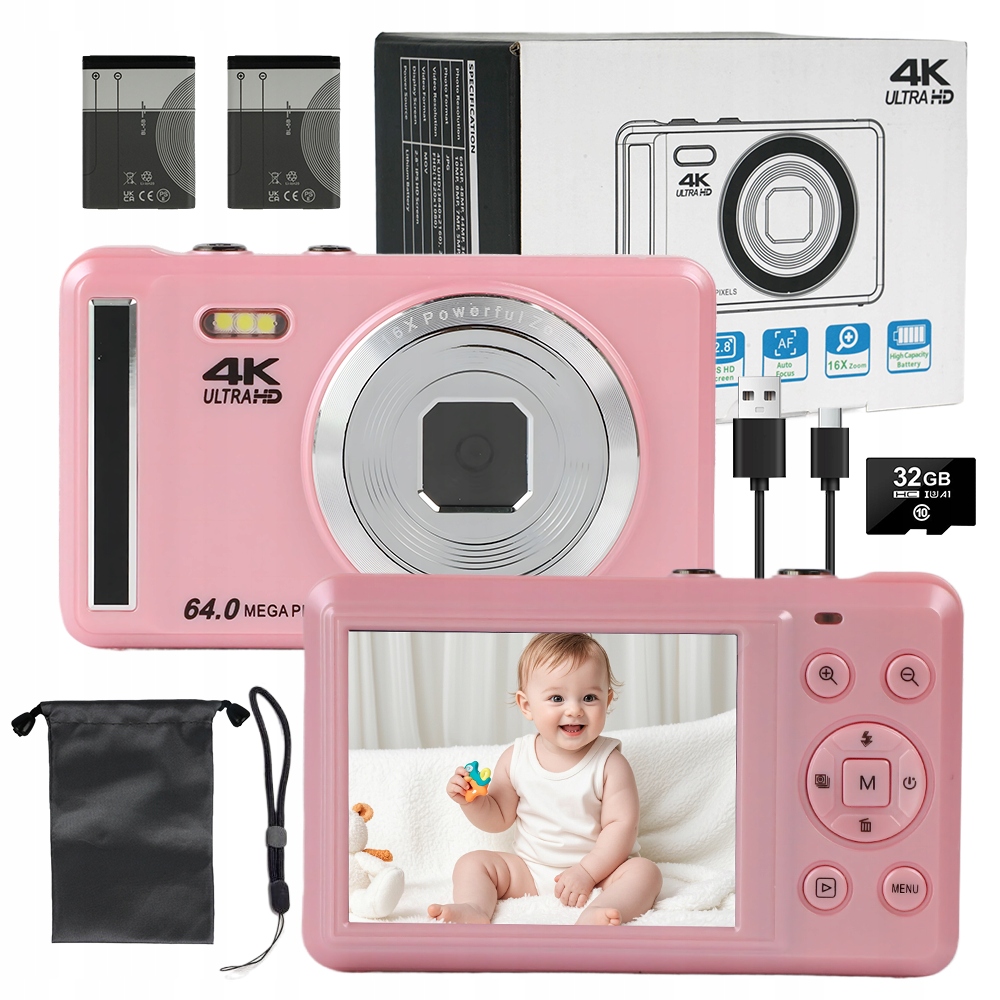 ЦИФРОВАЯ КАМЕРА 4K 64MP 16X ЦИФРОВОЙ ЗУМ 2,8-ДЮЙМОВЫЙ IPS ЭКРАН В ПОДАРОК ДЕТЯМ