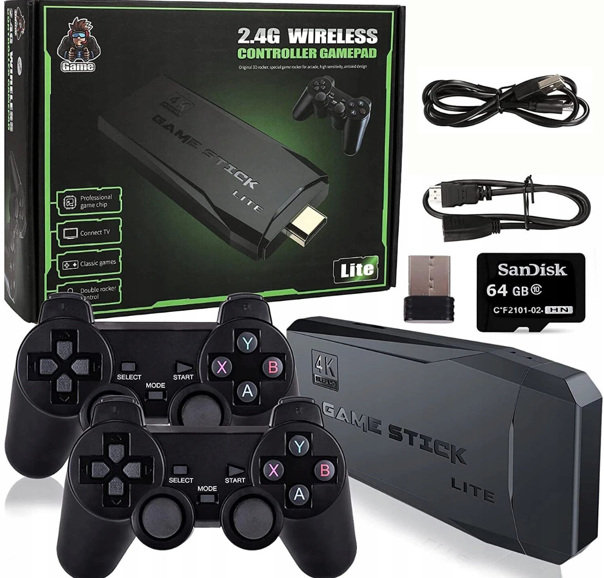 - Начните работу за считанные минуты благодаря простой настройке и использованию. Просто подключите консоль, подключите ее к телевизору и измените источник ТВ на HD-канал. Вставьте встроеннуюигровую карту TF и используйте адаптер зарядки для подключения к телевизору. Game Stick автоматически включится при подключении зарядного устройства к телевизору.