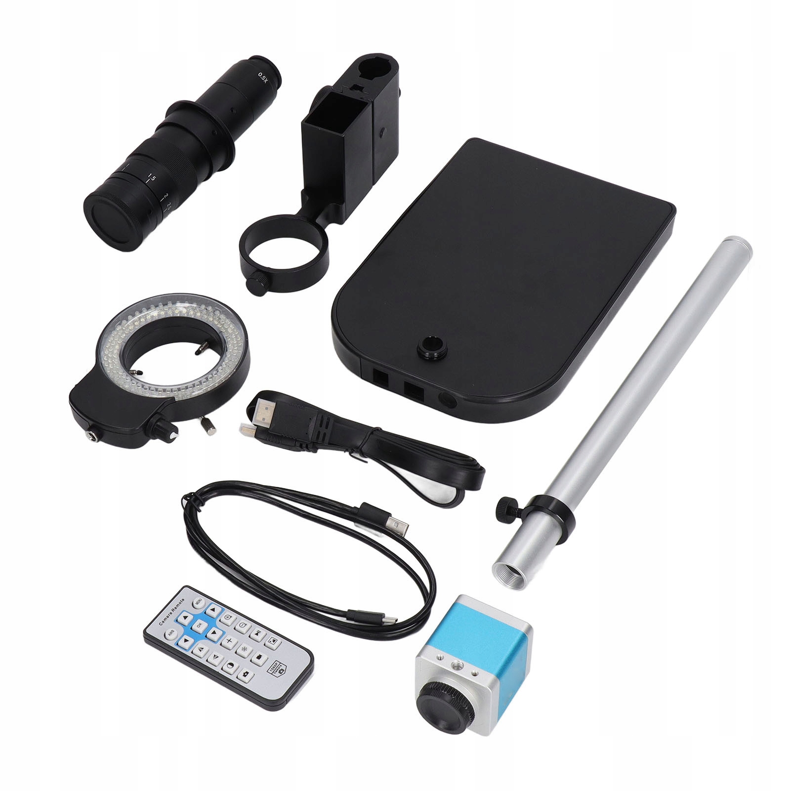 1. Микроскопический комплект: светодиодный набор из промышленной микроскопической камеры, оснащенный кронштейном и адаптером, готов к использованию после установки, удобной и практичной.