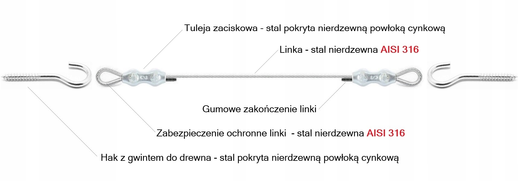 - Изготовлен из самого высокого качества из нержавеющей стали, придающей кислоте, используемой для производства различных видов аксессуаров в море, в которой из -за вредных условий (соль, химия, вода), высочайшее качество используемых материалов. Ссылки: 7x19 гарантирует превосходную гибкость и высокую устойчивость к деформации и растяжению.