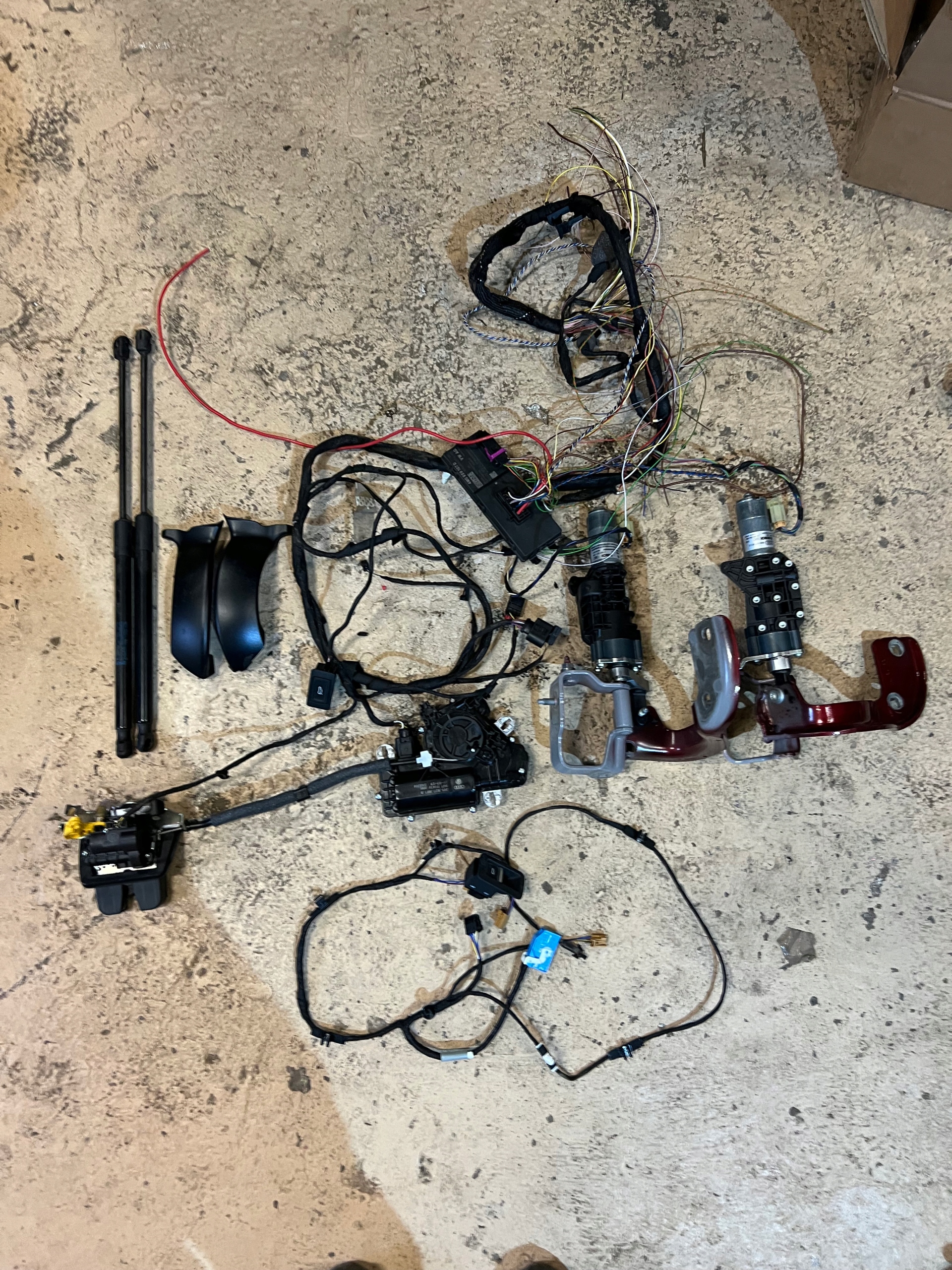 Установка с установкой на электрически открытый Audi A4 B9 2019 клапает все на фотографии, кнопки от двери и закрылки, эль-цилиндры с петлями, телескопами, контроллером, блокировкой с натяжением с TE-888x101x2222