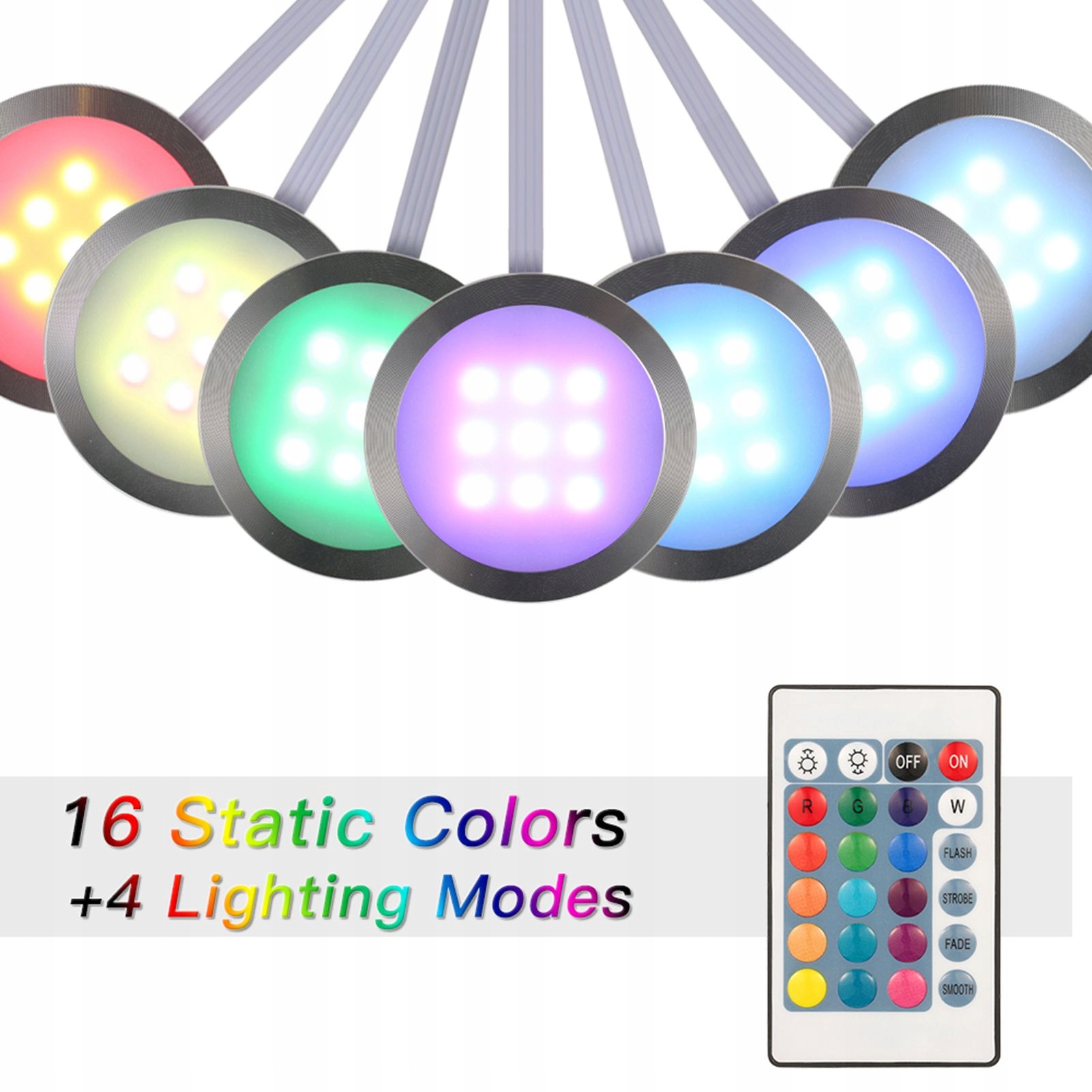 - 24 IR -клавиш Дистанционное управление, включите/выключено, регулируемая яркость, 16 цветов изменение, 4 эффекта освещения изменились в соответствии с вами.