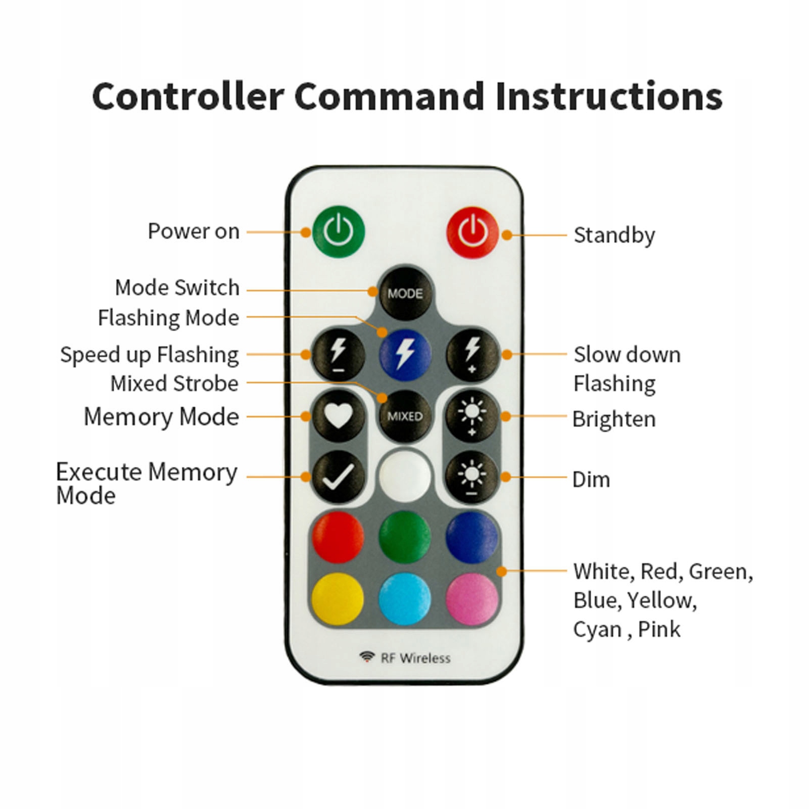 1. Пульт дистанционного управления: светодиодный стробоп -мир оснащен пультом дистанционного управления, вы можете легко изменить цвета и режимы удаленно с расстояния до 20 метров. Впервые мир впервые должен нажать и удерживать красную кнопку, чтобы запустить ее, прежде чем вы сможете использовать пульт дистанционного управления.