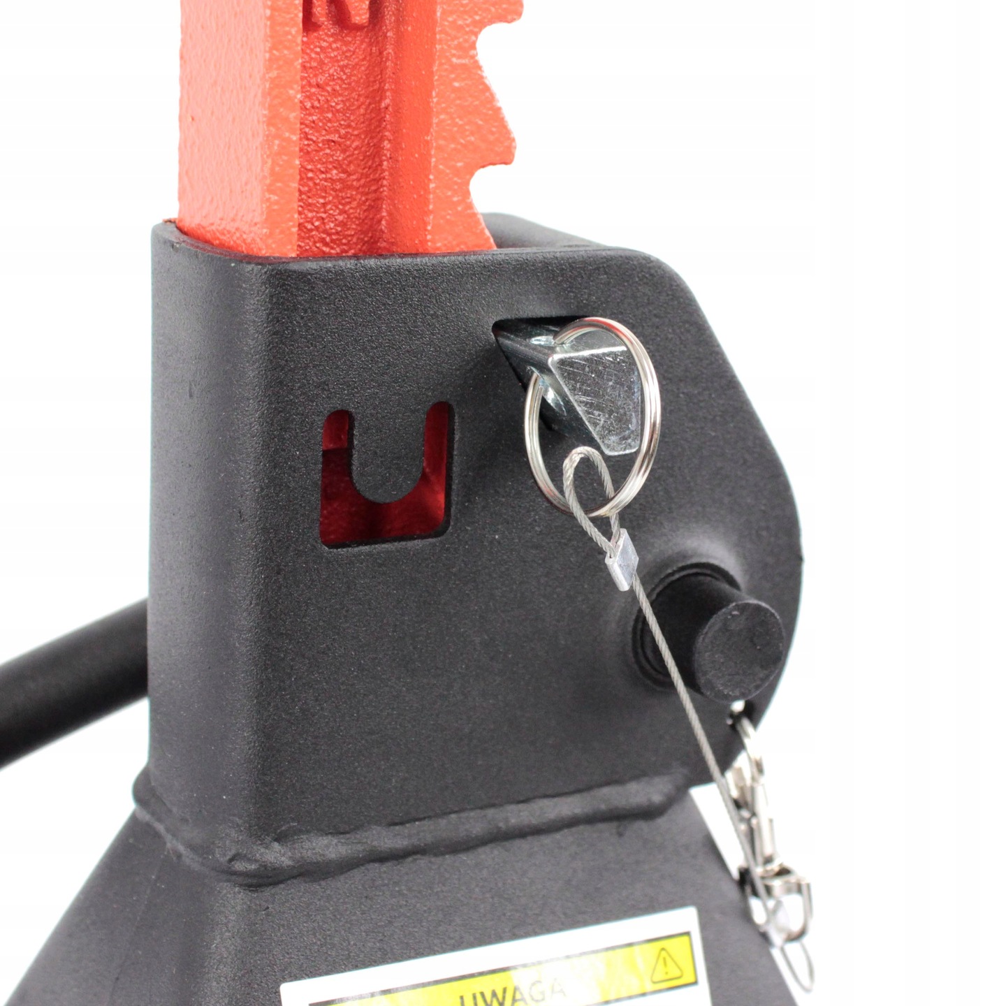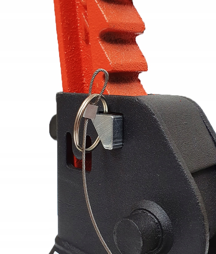 Специальный дополнительный замок в виде штифта защищает храповой механизм от непреднамеренного опускания опорной стойки. Штифт оснащен стальным тросом, прикрепленным к корпусу эстакады, что предохраняет его от потери.