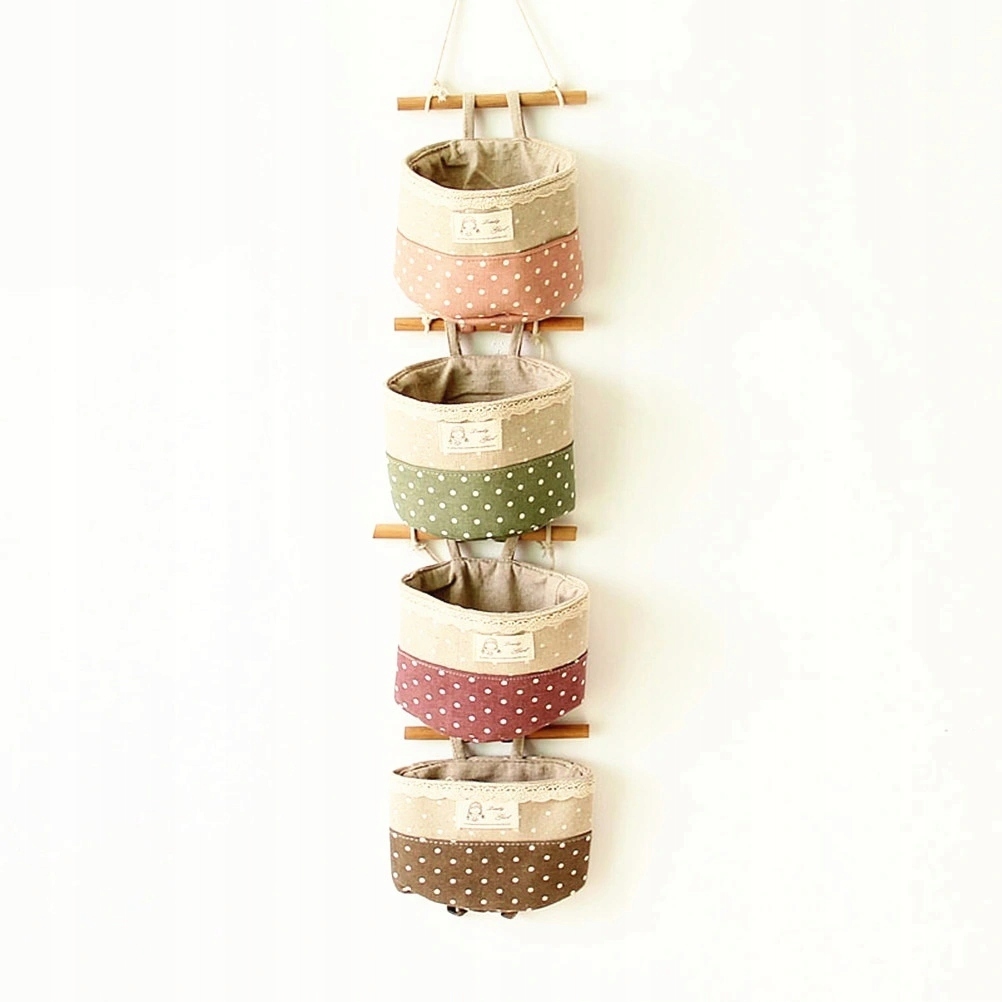 Эта вещь изготовлена из хлопка и льна высочайшего качества, что делает ее прочной и пригодной для многократного использования, не выцветает и не имеет запаха при стирке. Он связан с 4 карманами, деревянной палкой и веревкой для надежного и удобного подвешивания. Он имеет большую вместительность для хранения мелких предметов и экономит много места для вашего дома.