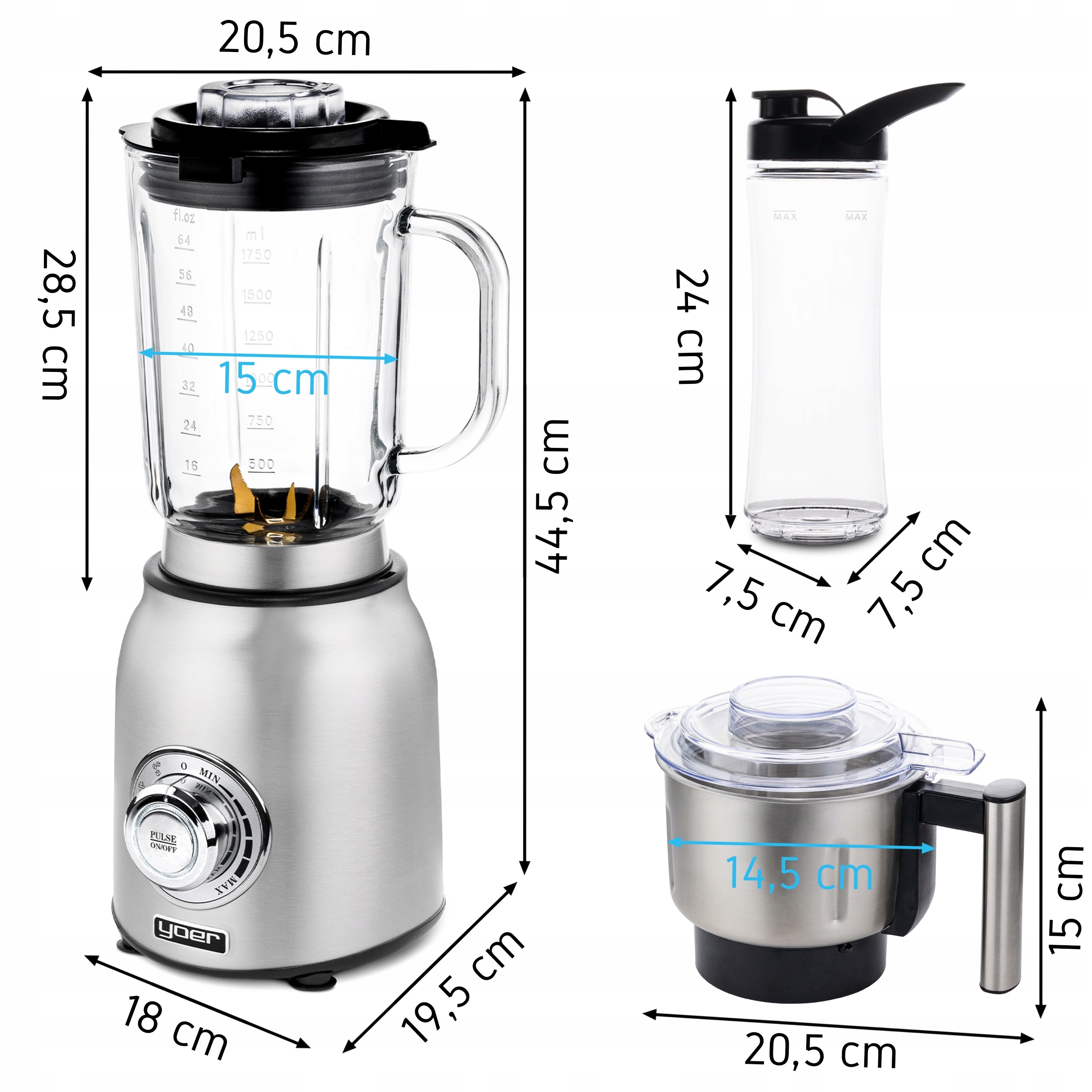 4in1 Blender Glass Chand Yoer 2.4L 1800W ➕ мельница ➕ 2 Bidons ➕ Stal Inox H1>