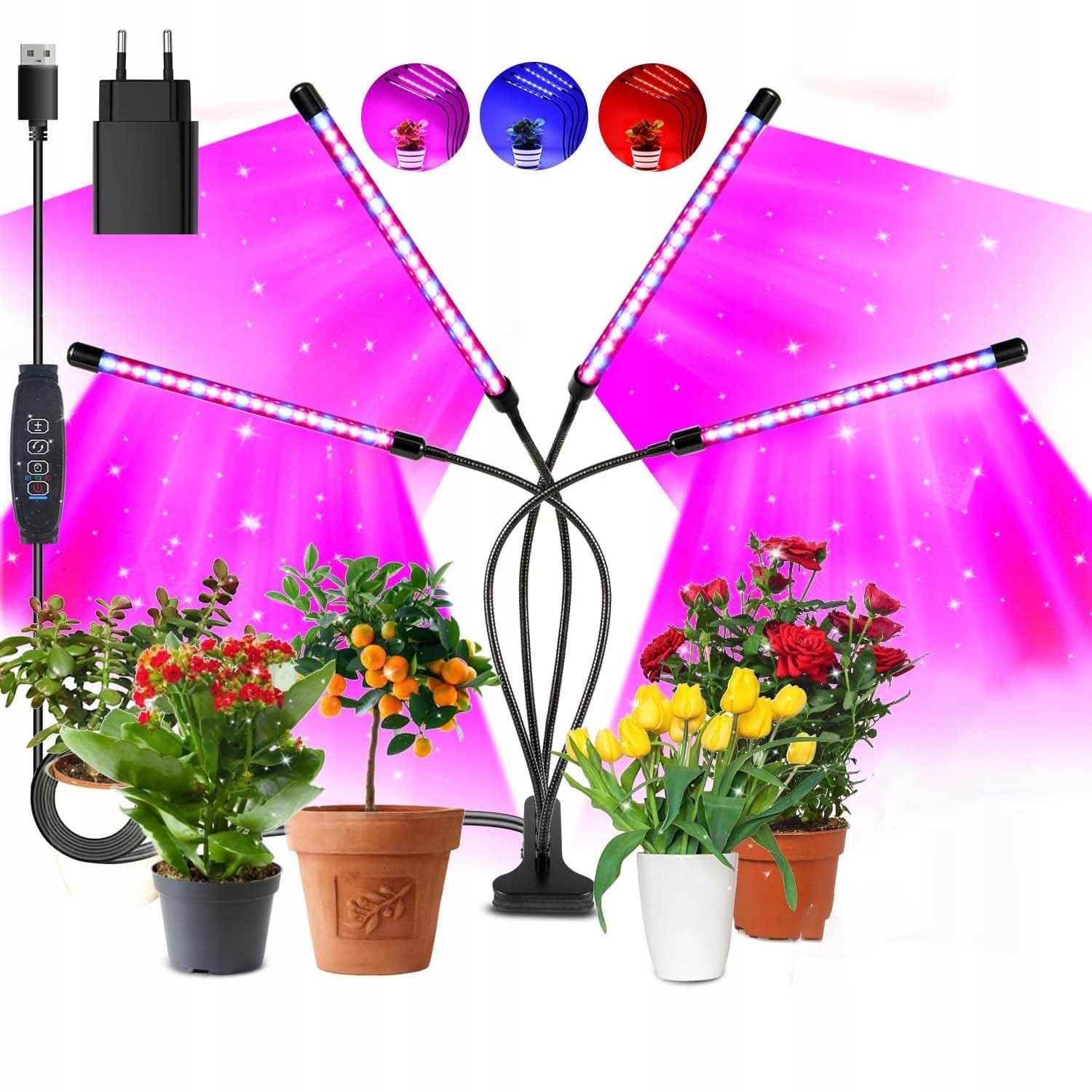 - - Благодаря четырем головкам лампы она может полностью позаботиться о нормальном развитии и процессе фотосинтеза растений.