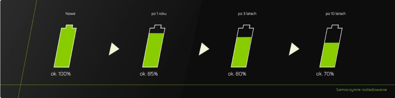 Использование современных материалов и передовых технологий производства значительно повышает долговечность аккумуляторов. Аккумуляторы Green Cell обеспечивают до 3 лет бесперебойной работы даже при большой нагрузке, а также сохраняют 85% запасенной энергии даже после 12 месяцев хранения. Они также приспособлены для работы при экстремальных температурах от -20 до 60°С, сохраняя при этом высокую эффективность!