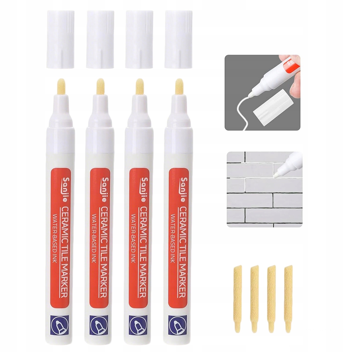 4X Белый карандаш для затирки швов со сменным наконечником для ремонта плитки