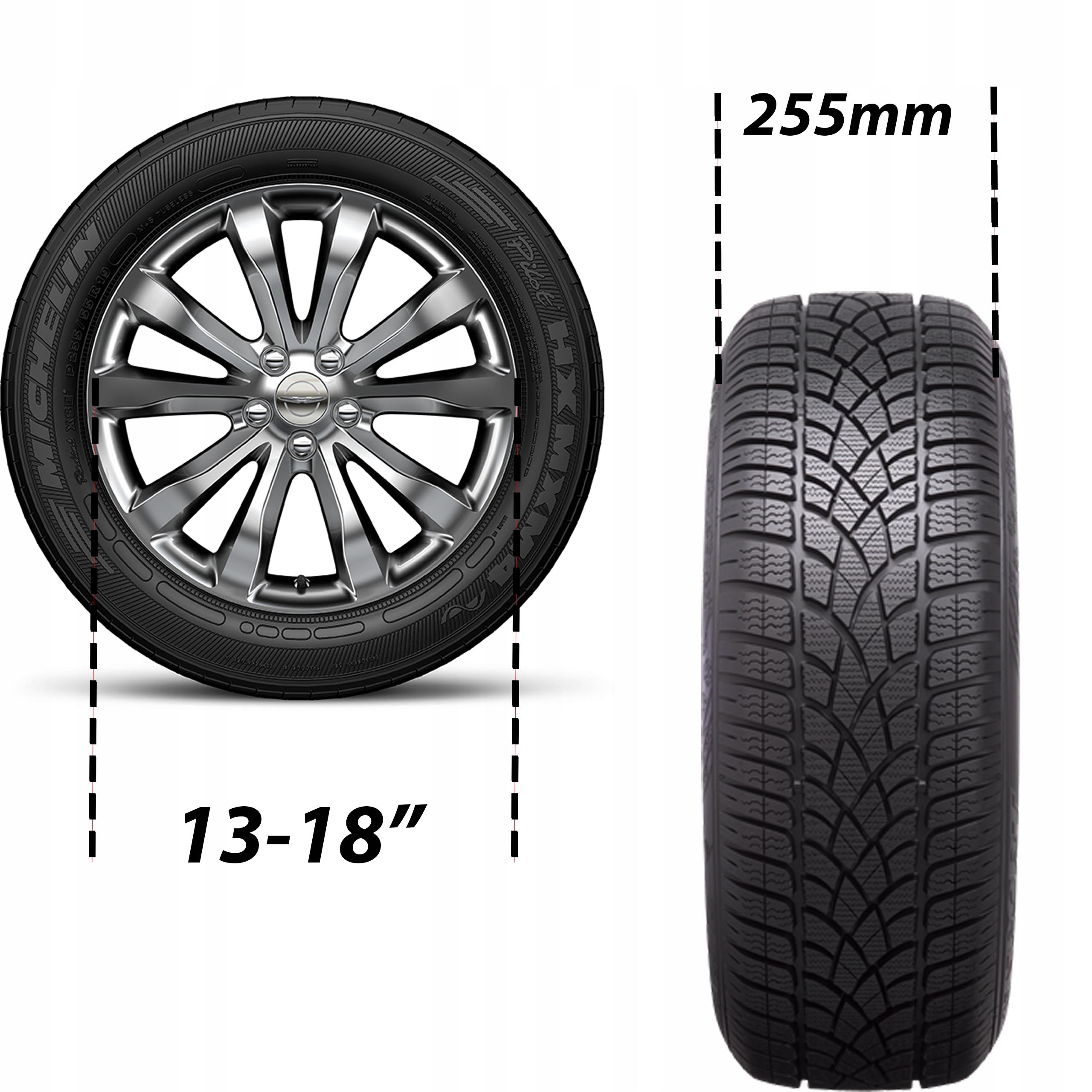 - ✅ Размер обода: 13–18 дюймов