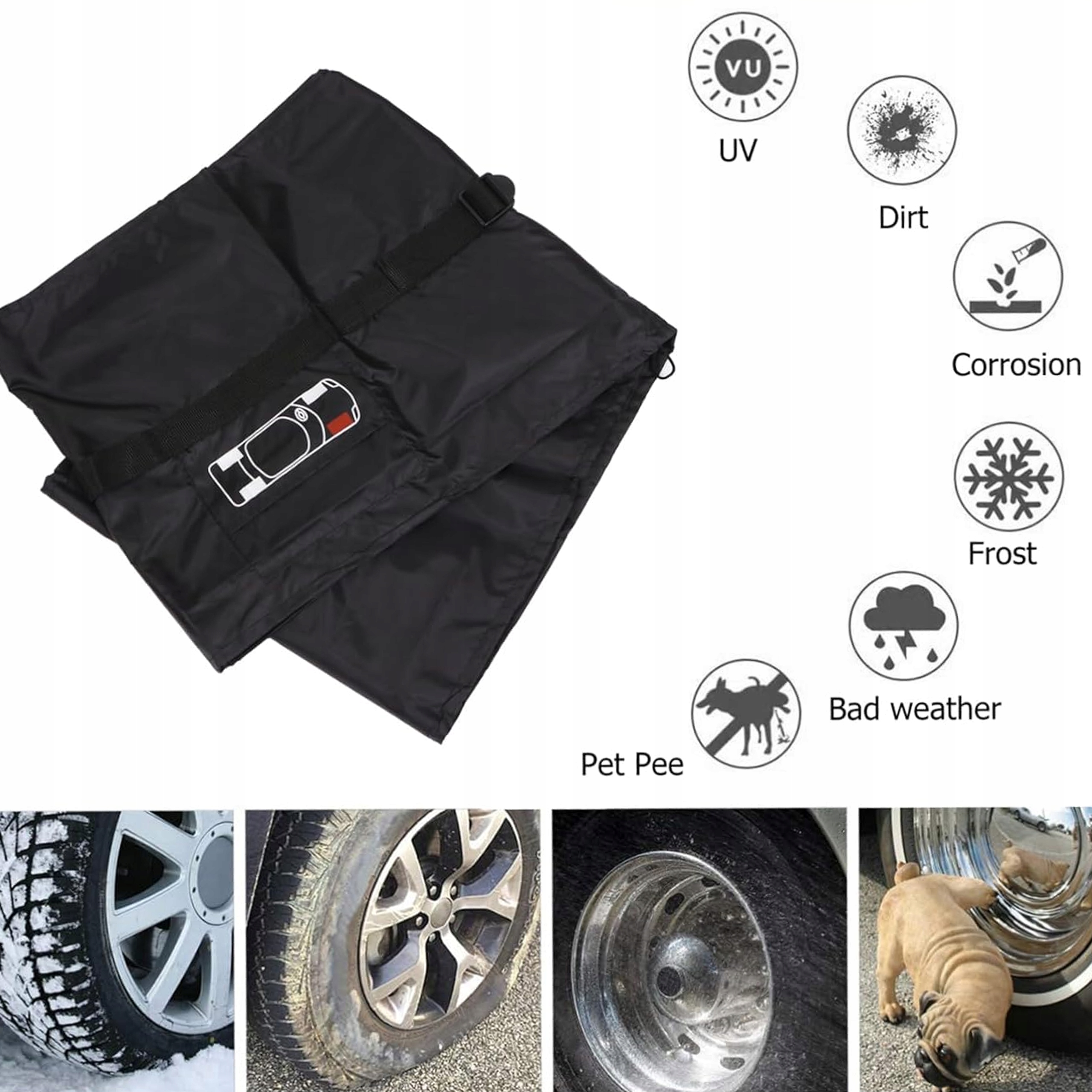 - ✅ Изготовлен из черный полиэстер (190D) для защиты шин от солнечных лучей.
